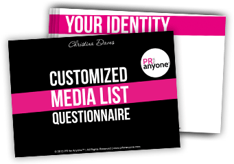 We have a unique questionnaire to pinpoint the top media outlets for you or your business. We will provide 10 of the best-matched contacts including national media if pertinent. List includes media outlet, full name, e-mail, address, phone, and fax and social media contact information, if available.